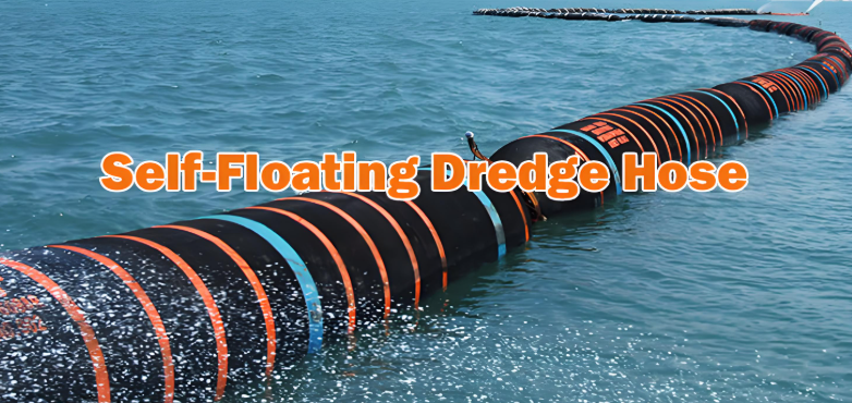 A: A self‑floating dredging hose is a rubber hose with an integrated buoyancy layer so that the hose itself can float on the water surface without separate pontoons, mainly used in surface discharge pipelines for transporting slurry from ship to shore or between floating sections.